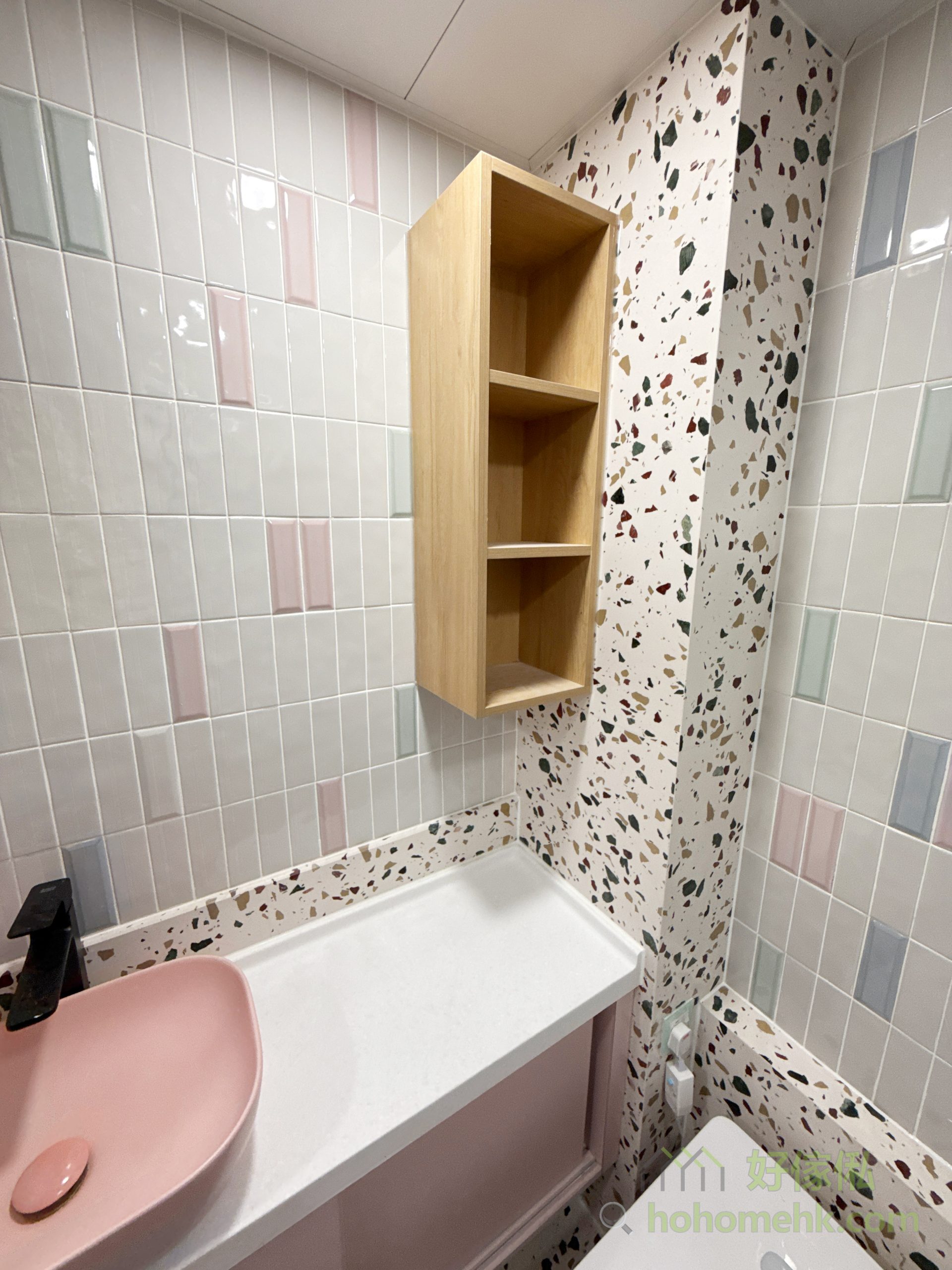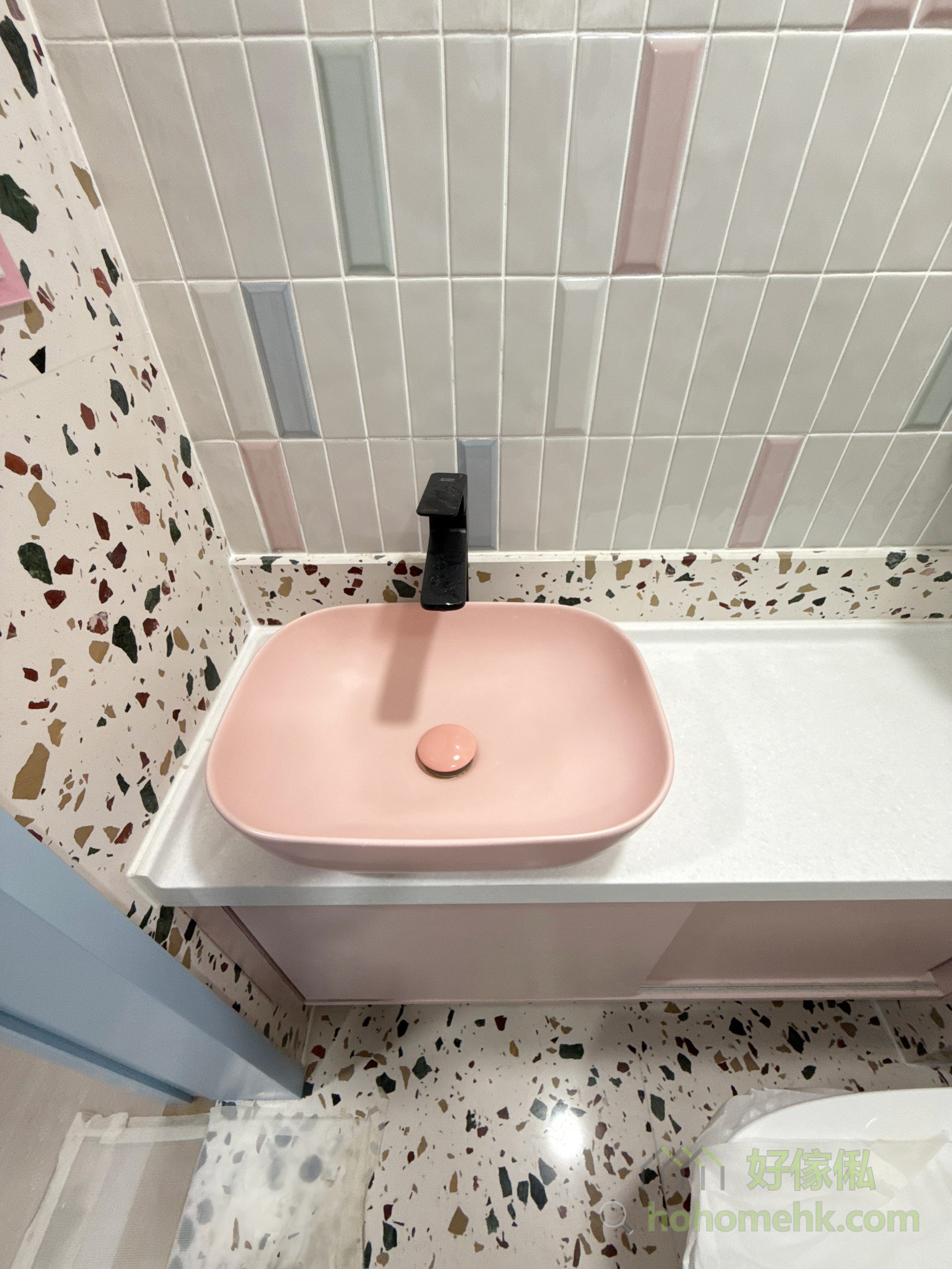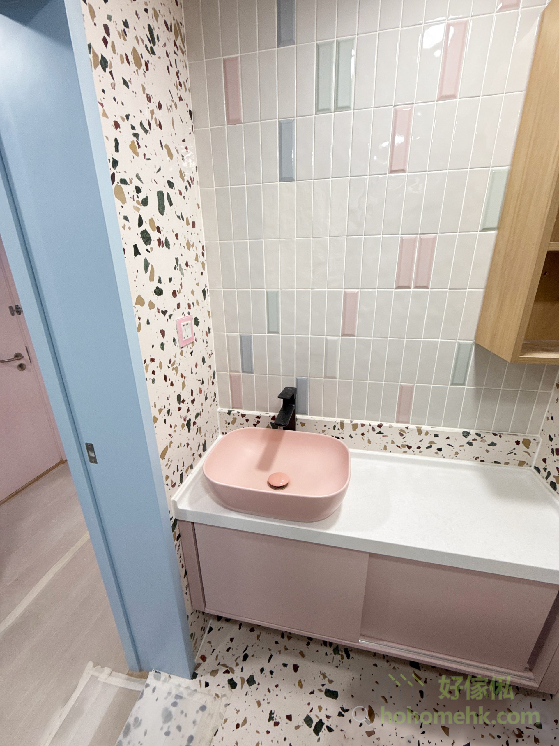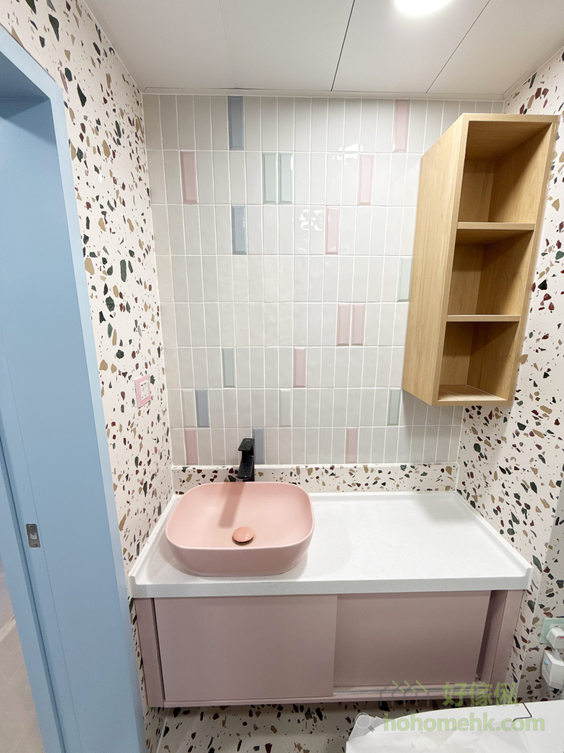 櫃身採用焗漆工藝,實現甜美的淺粉紅色調,為浴室增添一份浪漫與溫馨。這種設計風格既能融入馬卡龍主題,又具備高度耐用性,防潮防水,適合長期使用,同時滿足個性化設計需求。