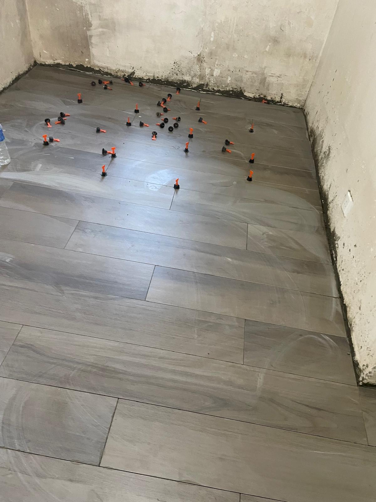 工程項目:泥水工程 — 客廳及房間鋪木紋磚 (亂工鋪)