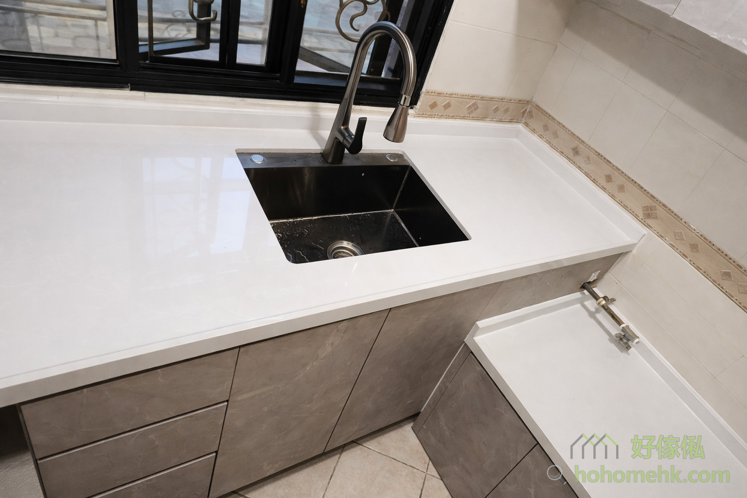每個家庭成員的使用習慣都各不相同,高低級廚櫃可以將廚房完全「度身訂造」。例如,若煮食與洗碗分屬不同成員負責,廚櫃高度可根據他們的身高調整,既減少腰部壓力,又滿足一家人的多用途需求。