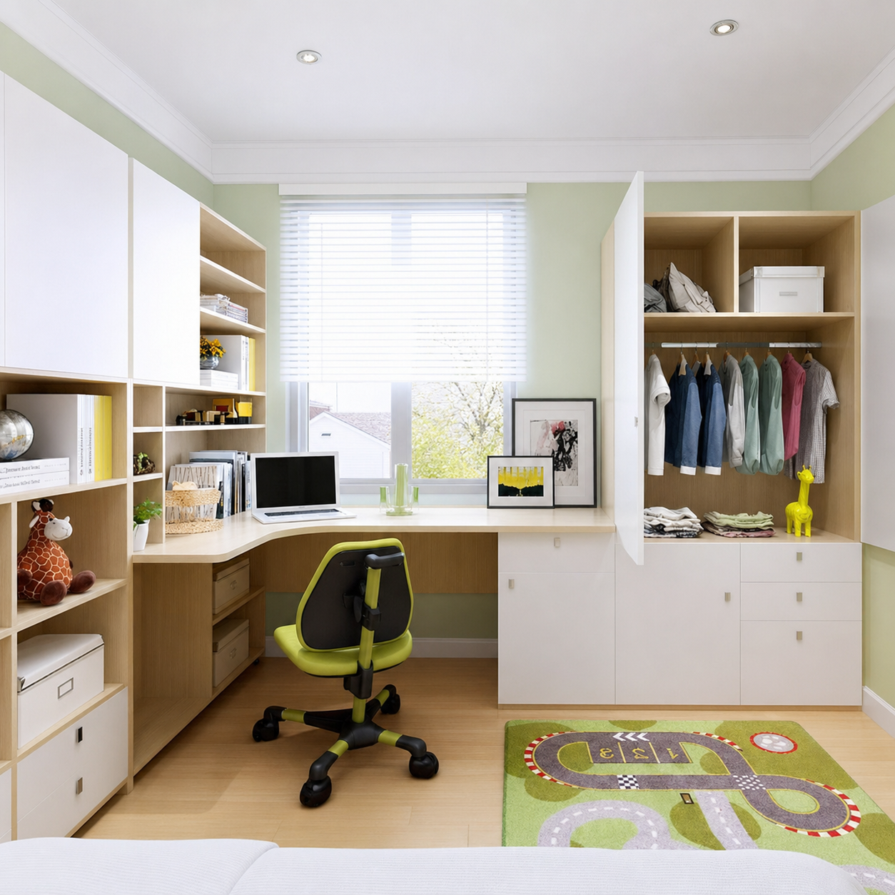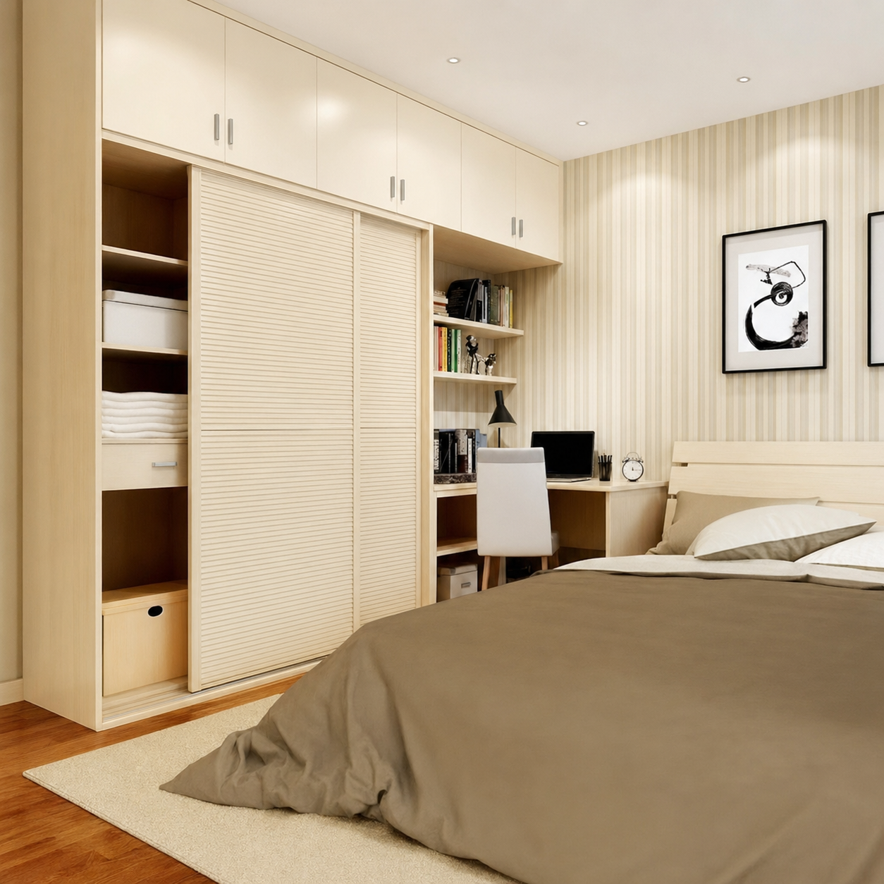 間牆櫃 雙人油壓床 梳妝枱 衣物收納櫃 書櫃 睡房設計 現代風格